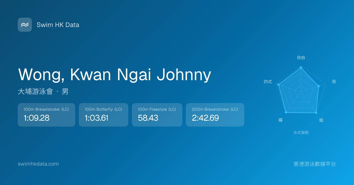 此圖表根據你所有比賽成績計算,顯示你在各泳式的相對強弱,僅供參考。繼續努力,每一次練習都會讓你更快更強!💪
