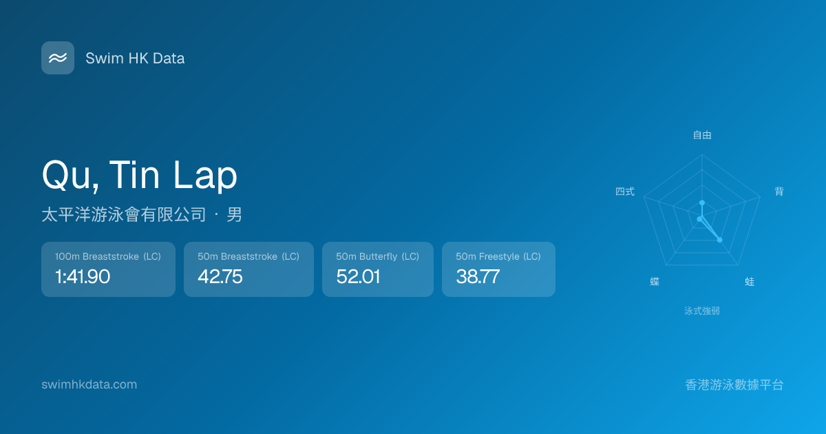 此圖表根據你所有比賽成績計算,顯示你在各泳式的相對強弱,僅供參考。繼續努力,每一次練習都會讓你更快更強!💪