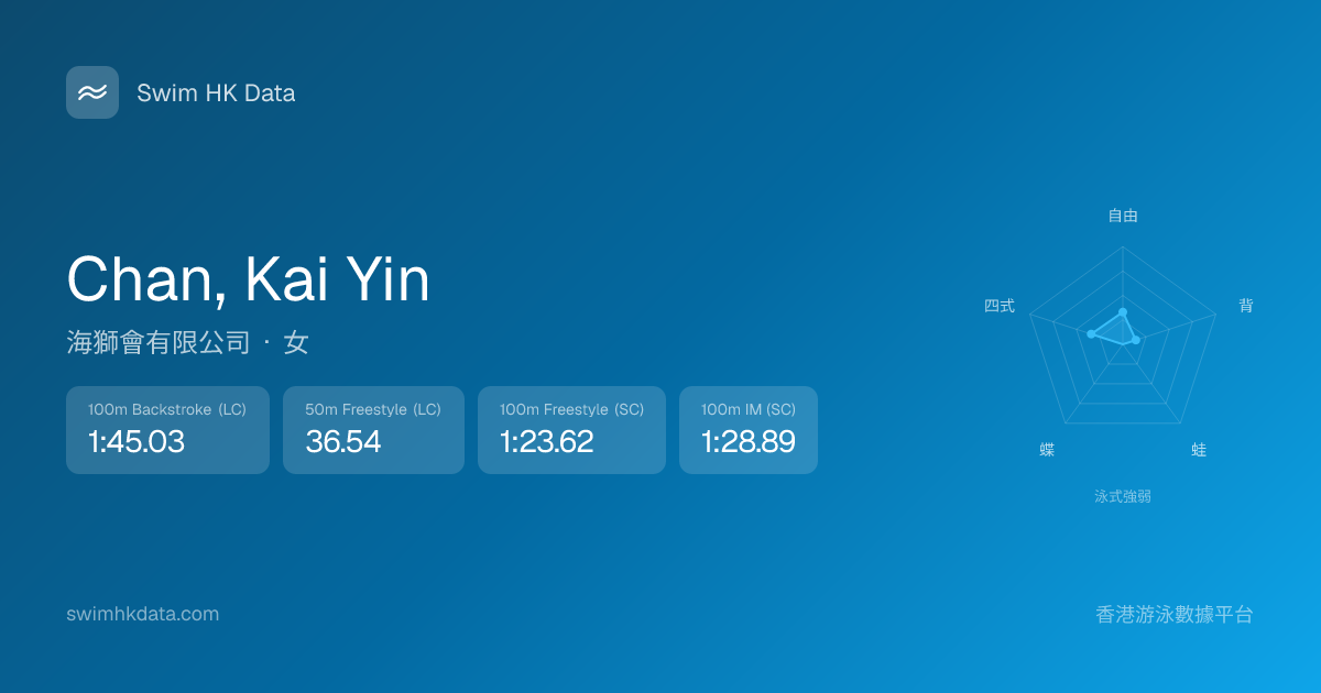 此圖表根據你所有比賽成績計算,顯示你在各泳式的相對強弱,僅供參考。繼續努力,每一次練習都會讓你更快更強!💪