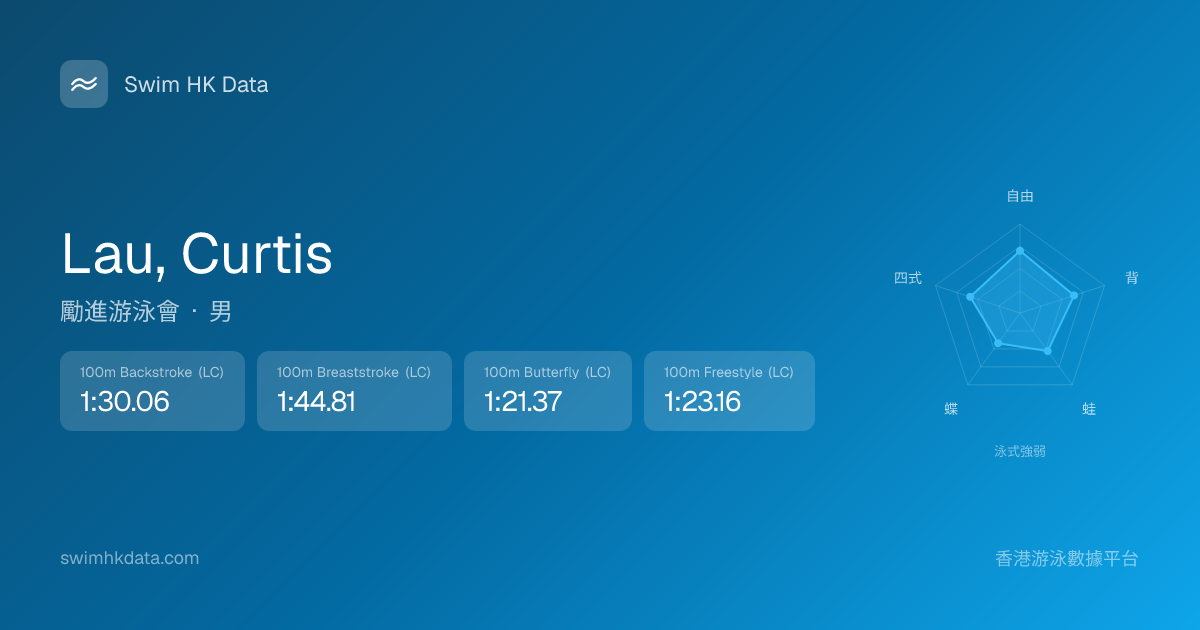 此圖表根據你所有比賽成績計算,顯示你在各泳式的相對強弱,僅供參考。繼續努力,每一次練習都會讓你更快更強!💪