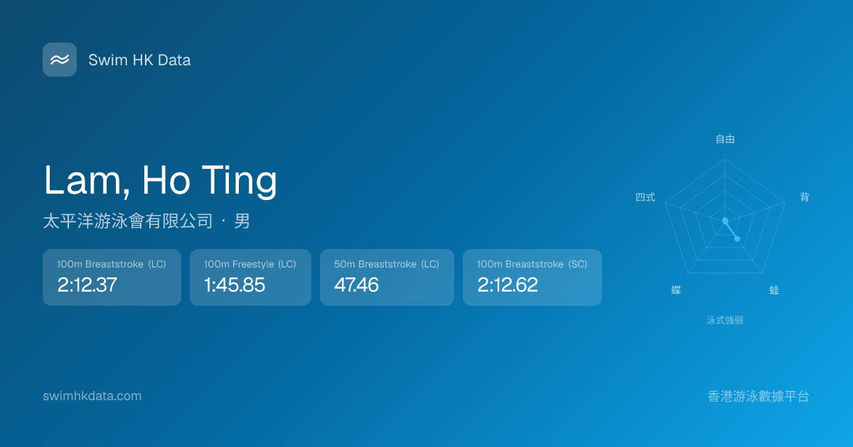 此圖表根據你所有比賽成績計算,顯示你在各泳式的相對強弱,僅供參考。繼續努力,每一次練習都會讓你更快更強!💪