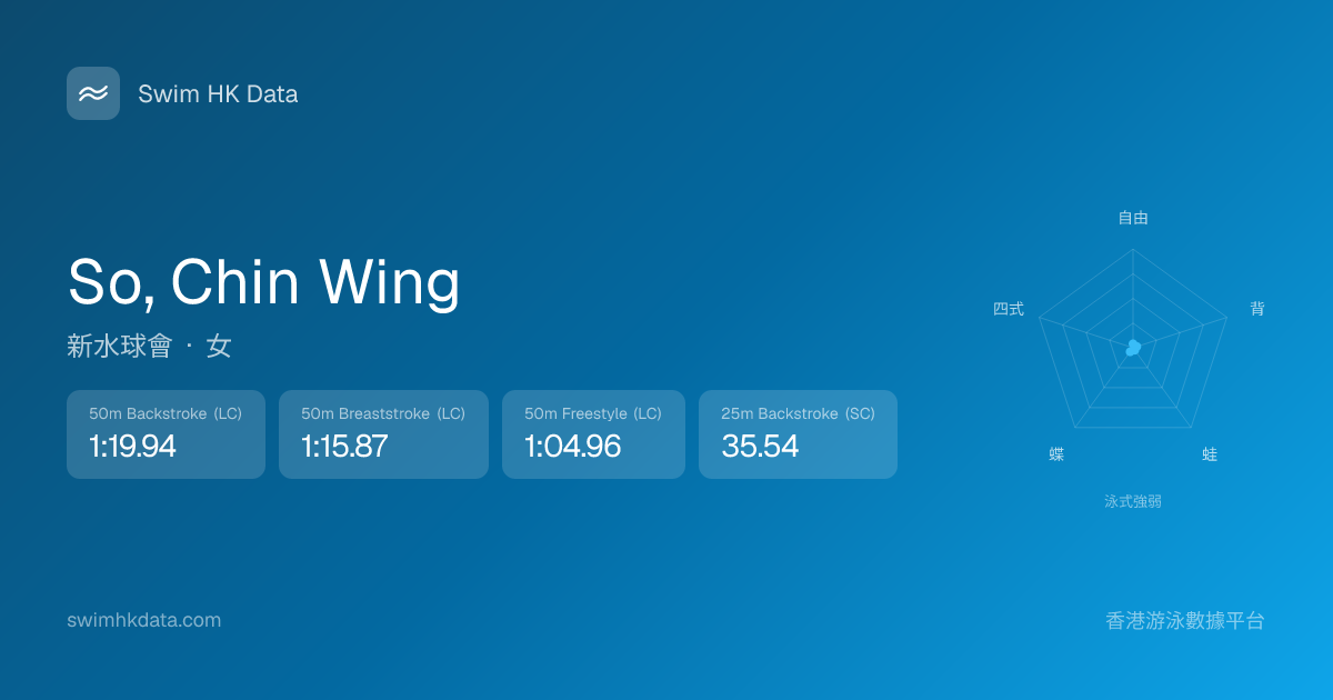 此圖表根據你所有比賽成績計算,顯示你在各泳式的相對強弱,僅供參考。繼續努力,每一次練習都會讓你更快更強!💪