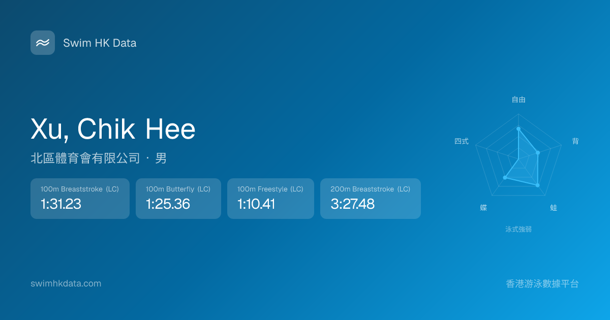 此圖表根據你所有比賽成績計算,顯示你在各泳式的相對強弱,僅供參考。繼續努力,每一次練習都會讓你更快更強!💪