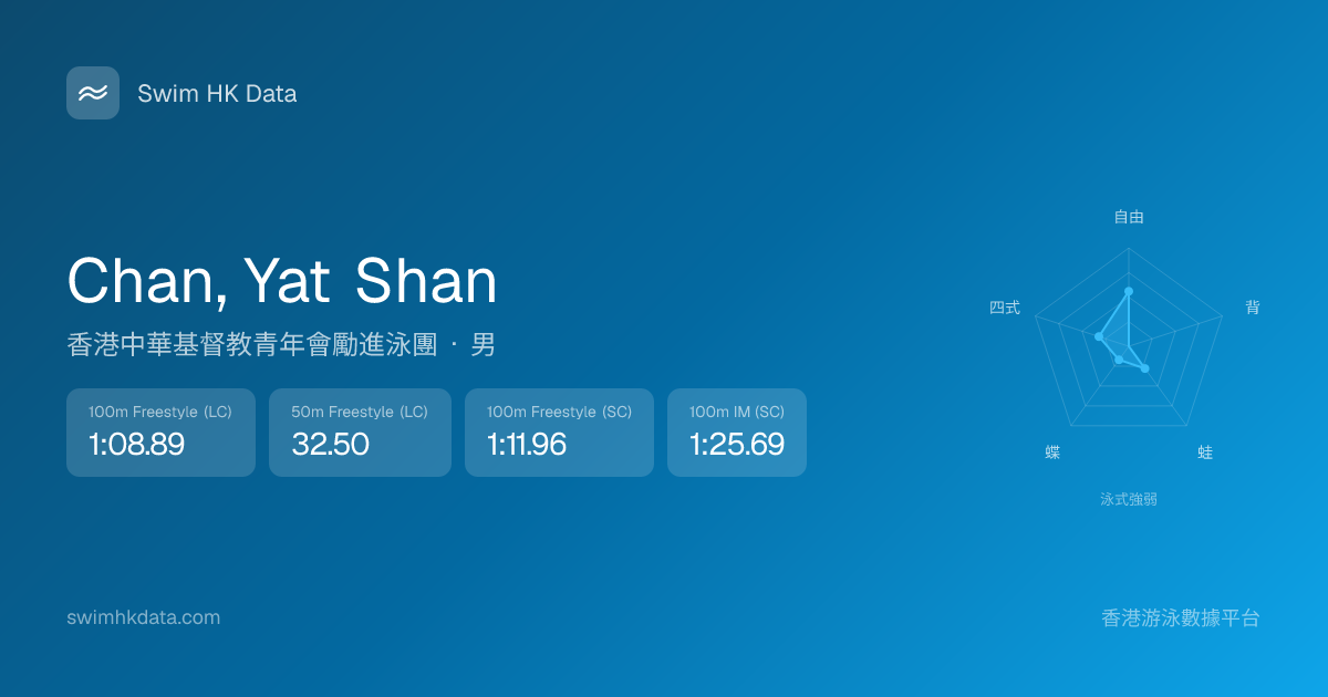 此圖表根據你所有比賽成績計算,顯示你在各泳式的相對強弱,僅供參考。繼續努力,每一次練習都會讓你更快更強!💪