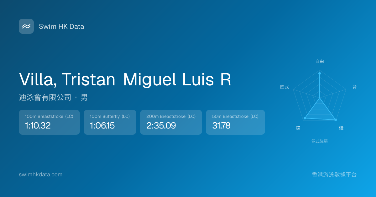 此圖表根據你所有比賽成績計算,顯示你在各泳式的相對強弱,僅供參考。繼續努力,每一次練習都會讓你更快更強!💪