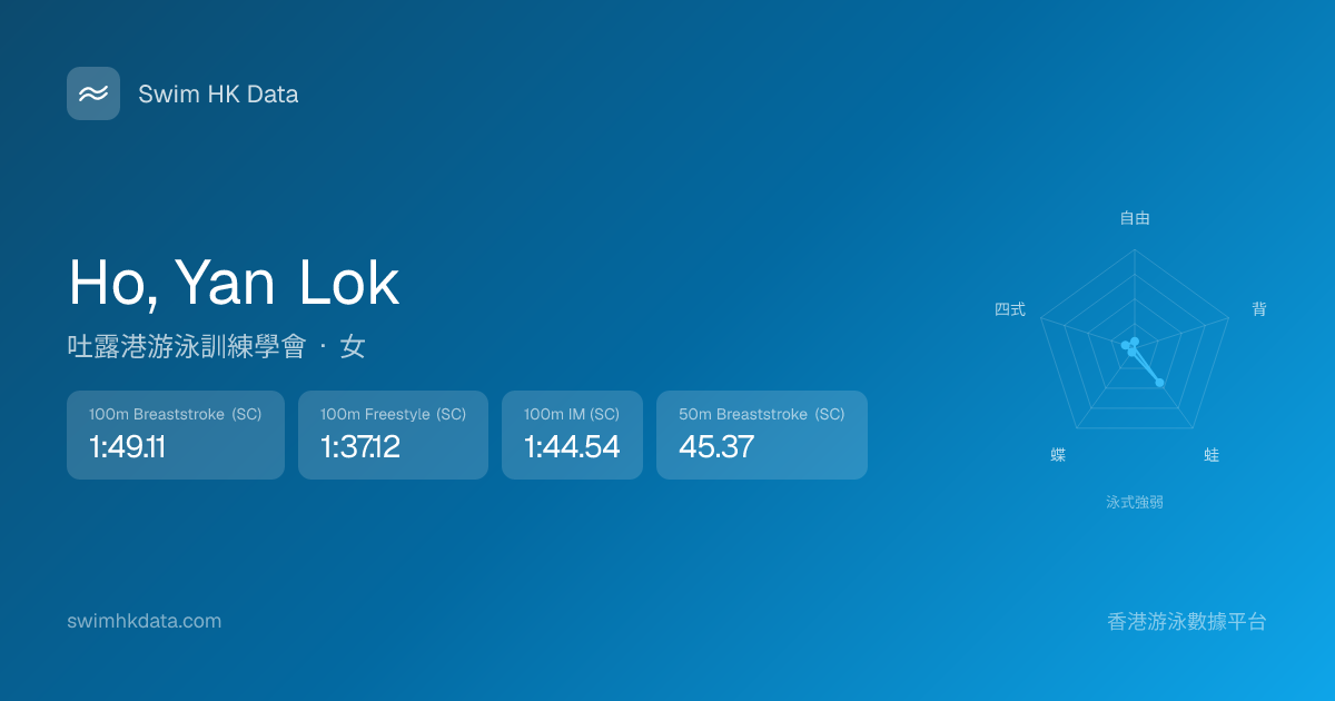 此圖表根據你所有比賽成績計算,顯示你在各泳式的相對強弱,僅供參考。繼續努力,每一次練習都會讓你更快更強!💪