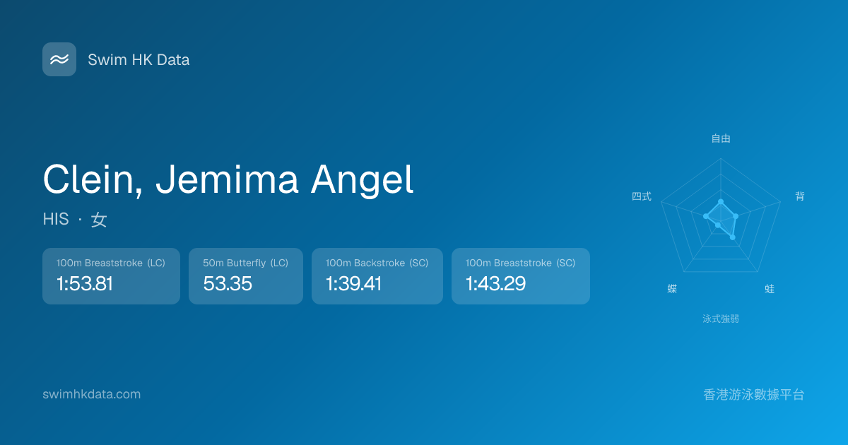 此圖表根據你所有比賽成績計算,顯示你在各泳式的相對強弱,僅供參考。繼續努力,每一次練習都會讓你更快更強!💪
