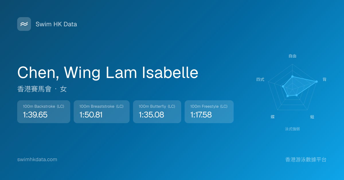 此圖表根據你所有比賽成績計算,顯示你在各泳式的相對強弱,僅供參考。繼續努力,每一次練習都會讓你更快更強!💪