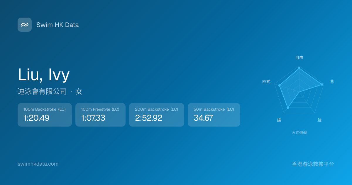 此圖表根據你所有比賽成績計算,顯示你在各泳式的相對強弱,僅供參考。繼續努力,每一次練習都會讓你更快更強!💪