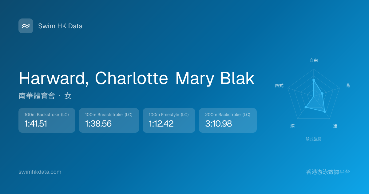 此圖表根據你所有比賽成績計算,顯示你在各泳式的相對強弱,僅供參考。繼續努力,每一次練習都會讓你更快更強!💪