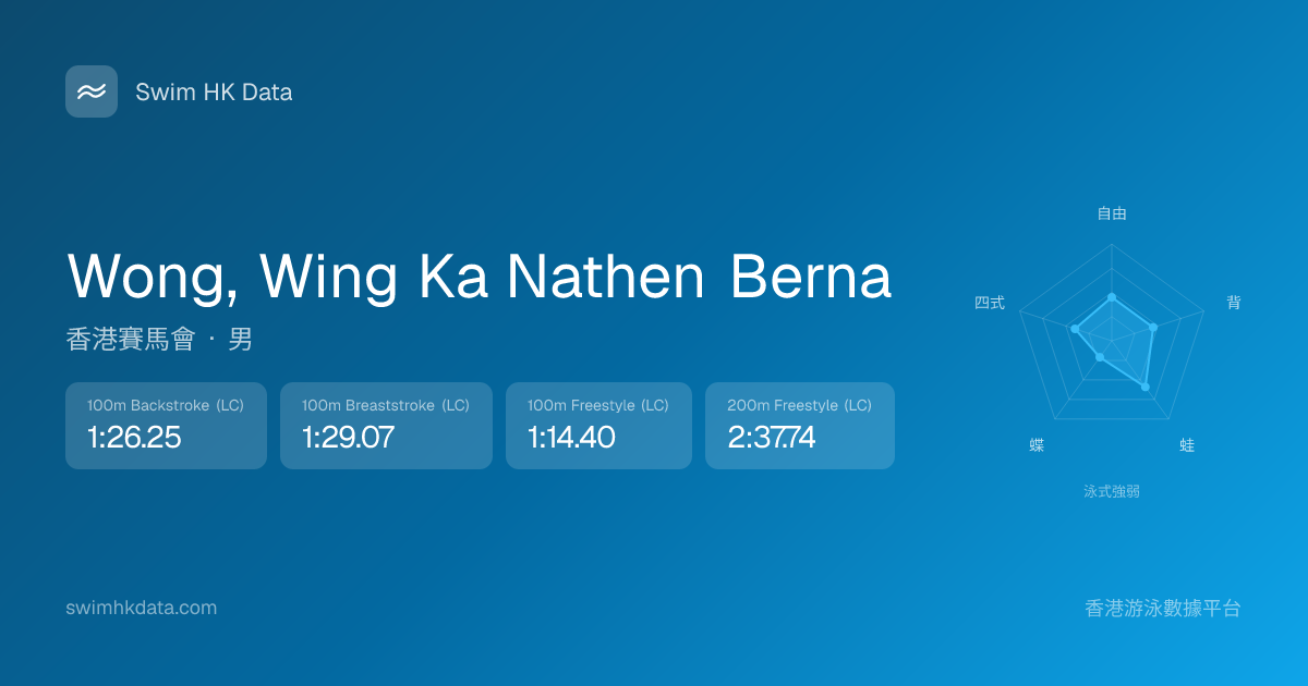 此圖表根據你所有比賽成績計算,顯示你在各泳式的相對強弱,僅供參考。繼續努力,每一次練習都會讓你更快更強!💪