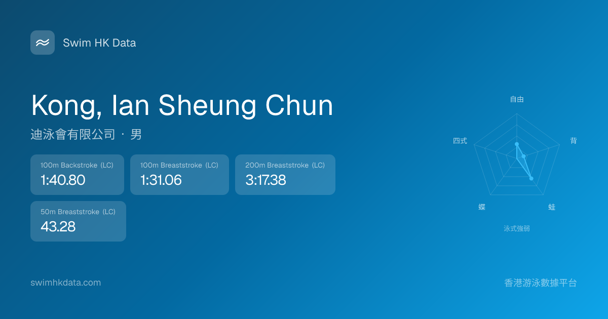 此圖表根據你所有比賽成績計算,顯示你在各泳式的相對強弱,僅供參考。繼續努力,每一次練習都會讓你更快更強!💪