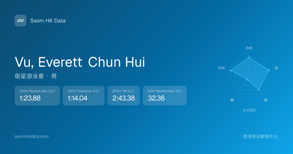 此圖表根據你所有比賽成績計算,顯示你在各泳式的相對強弱,僅供參考。繼續努力,每一次練習都會讓你更快更強!💪