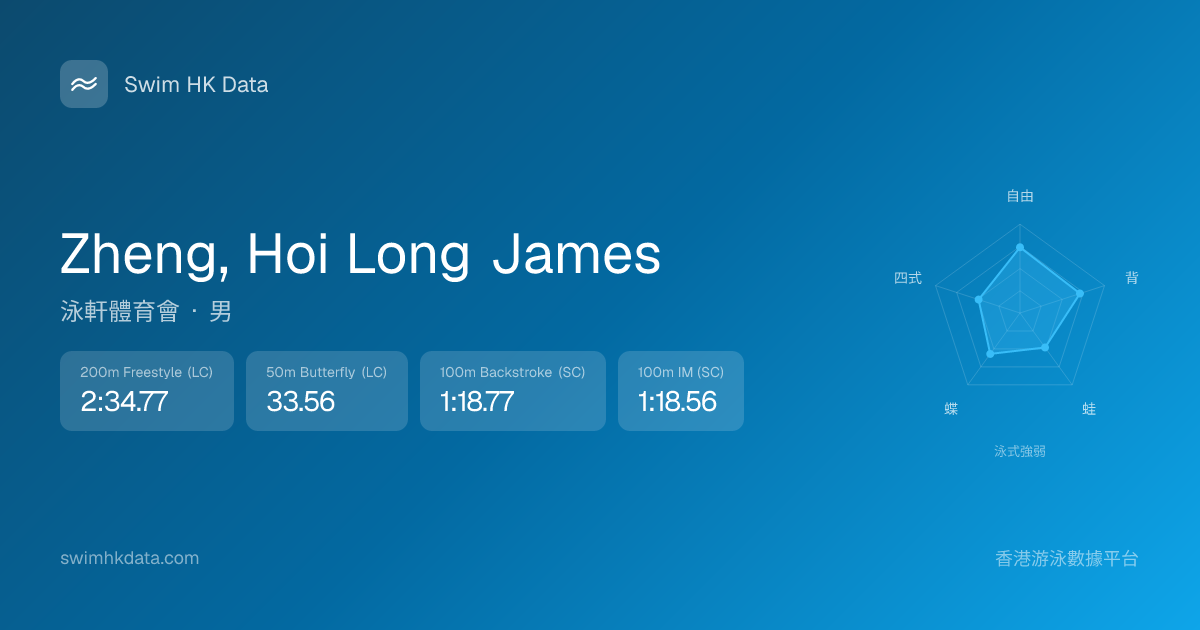 此圖表根據你所有比賽成績計算,顯示你在各泳式的相對強弱,僅供參考。繼續努力,每一次練習都會讓你更快更強!💪