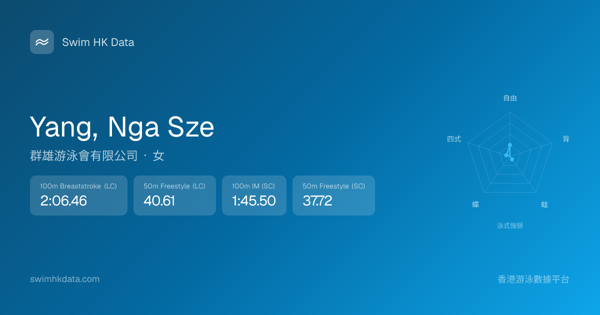 此圖表根據你所有比賽成績計算,顯示你在各泳式的相對強弱,僅供參考。繼續努力,每一次練習都會讓你更快更強!💪