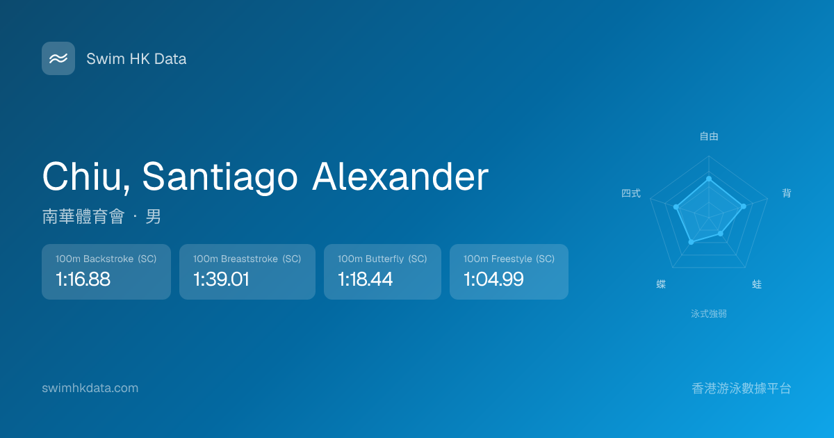 此圖表根據你所有比賽成績計算,顯示你在各泳式的相對強弱,僅供參考。繼續努力,每一次練習都會讓你更快更強!💪