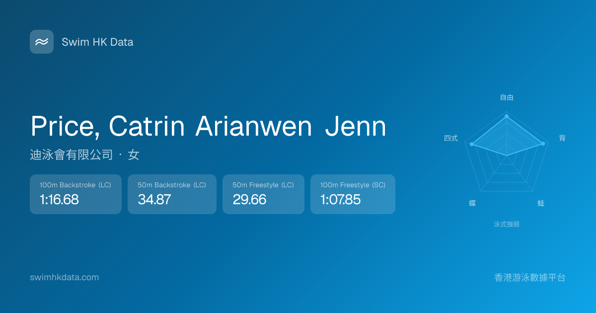 此圖表根據你所有比賽成績計算,顯示你在各泳式的相對強弱,僅供參考。繼續努力,每一次練習都會讓你更快更強!💪