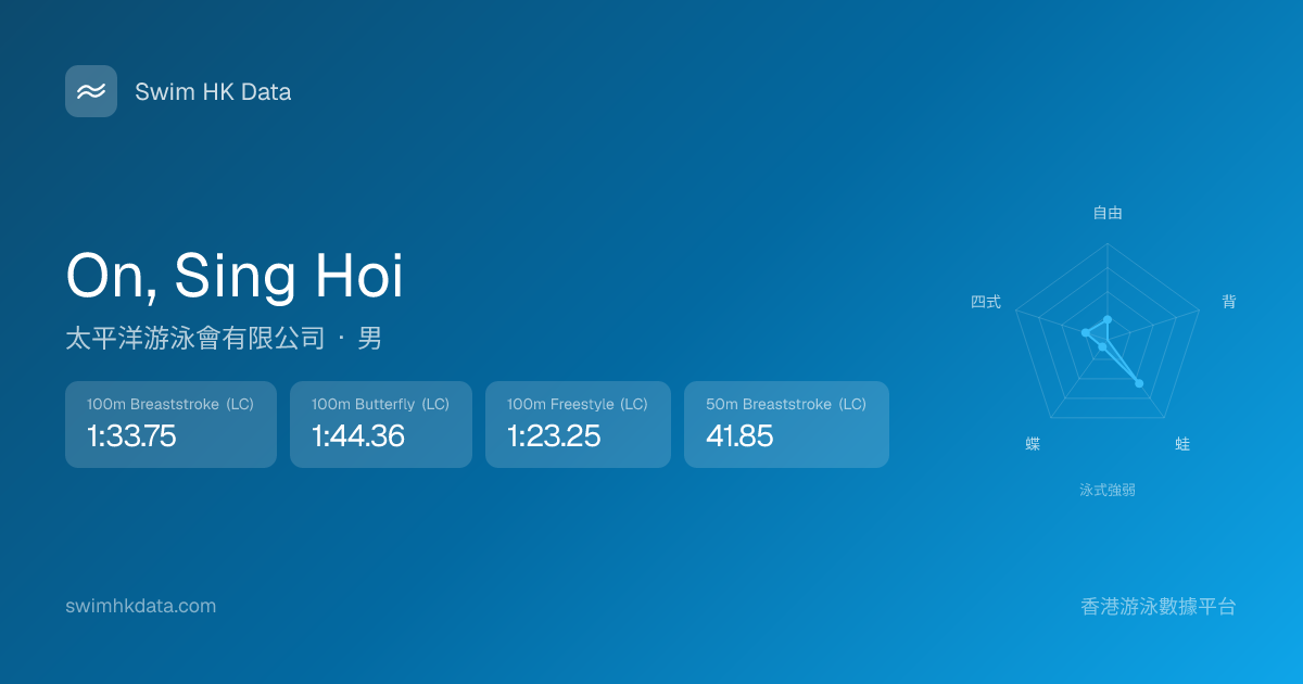 此圖表根據你所有比賽成績計算,顯示你在各泳式的相對強弱,僅供參考。繼續努力,每一次練習都會讓你更快更強!💪