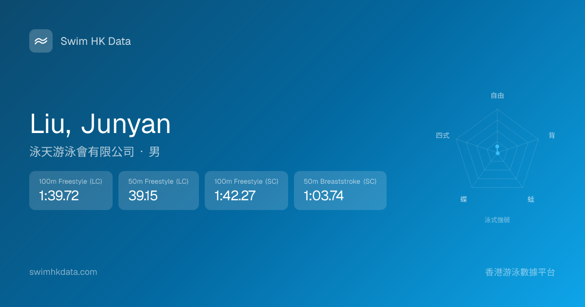 此圖表根據你所有比賽成績計算,顯示你在各泳式的相對強弱,僅供參考。繼續努力,每一次練習都會讓你更快更強!💪