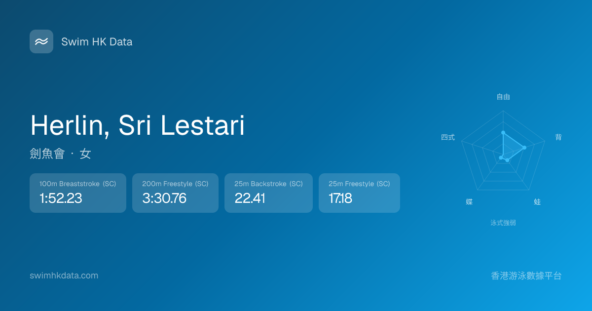 此圖表根據你所有比賽成績計算,顯示你在各泳式的相對強弱,僅供參考。繼續努力,每一次練習都會讓你更快更強!💪