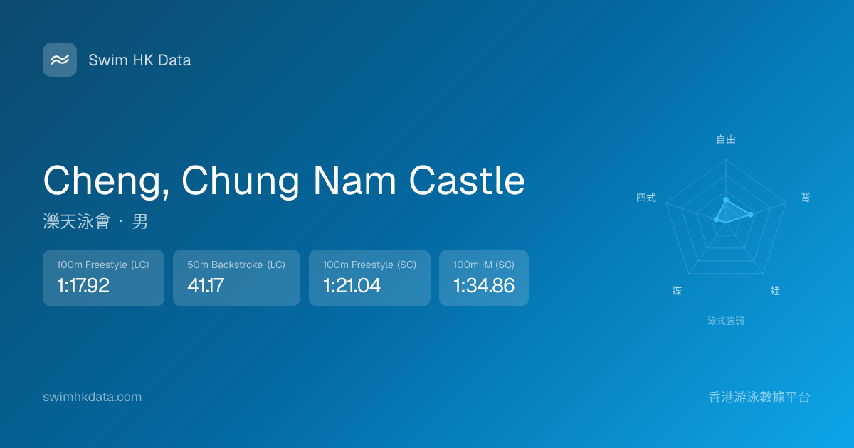 此圖表根據你所有比賽成績計算,顯示你在各泳式的相對強弱,僅供參考。繼續努力,每一次練習都會讓你更快更強!💪