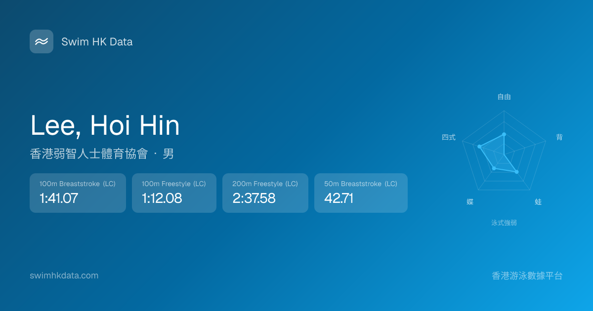 此圖表根據你所有比賽成績計算,顯示你在各泳式的相對強弱,僅供參考。繼續努力,每一次練習都會讓你更快更強!💪