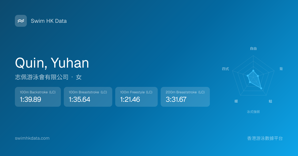 此圖表根據你所有比賽成績計算,顯示你在各泳式的相對強弱,僅供參考。繼續努力,每一次練習都會讓你更快更強!💪