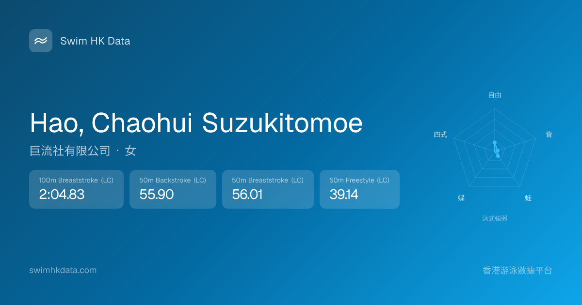 此圖表根據你所有比賽成績計算,顯示你在各泳式的相對強弱,僅供參考。繼續努力,每一次練習都會讓你更快更強!💪