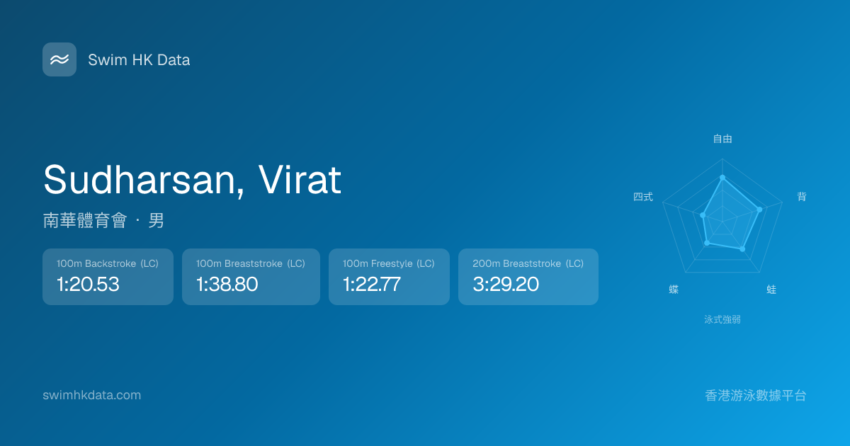 此圖表根據你所有比賽成績計算,顯示你在各泳式的相對強弱,僅供參考。繼續努力,每一次練習都會讓你更快更強!💪