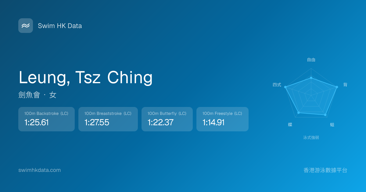 此圖表根據你所有比賽成績計算,顯示你在各泳式的相對強弱,僅供參考。繼續努力,每一次練習都會讓你更快更強!💪
