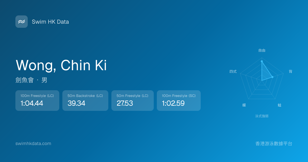 此圖表根據你所有比賽成績計算,顯示你在各泳式的相對強弱,僅供參考。繼續努力,每一次練習都會讓你更快更強!💪
