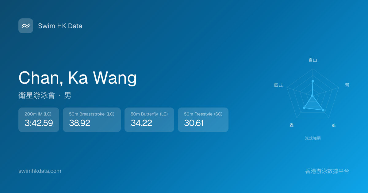 此圖表根據你所有比賽成績計算,顯示你在各泳式的相對強弱,僅供參考。繼續努力,每一次練習都會讓你更快更強!💪