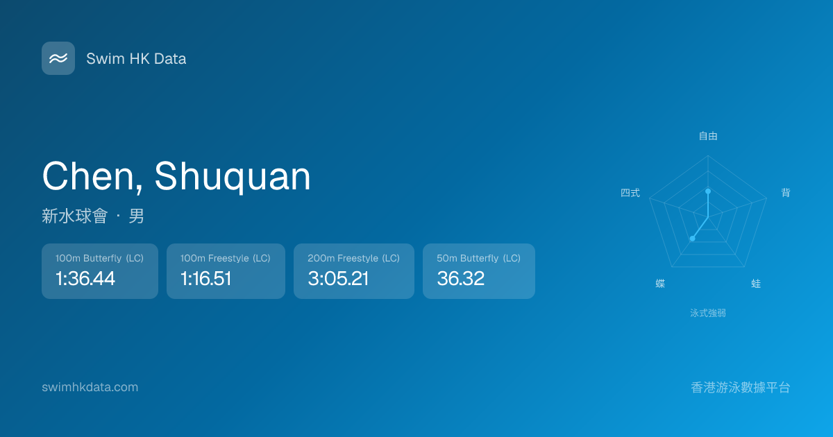 此圖表根據你所有比賽成績計算,顯示你在各泳式的相對強弱,僅供參考。繼續努力,每一次練習都會讓你更快更強!💪