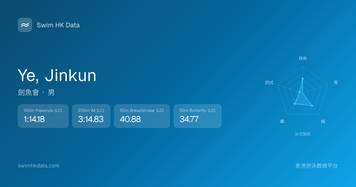 此圖表根據你所有比賽成績計算,顯示你在各泳式的相對強弱,僅供參考。繼續努力,每一次練習都會讓你更快更強!💪