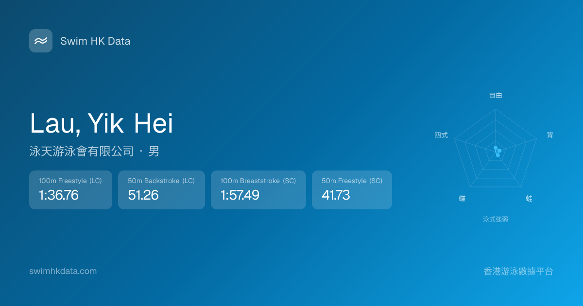 此圖表根據你所有比賽成績計算,顯示你在各泳式的相對強弱,僅供參考。繼續努力,每一次練習都會讓你更快更強!💪