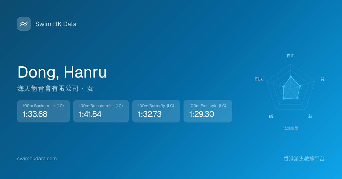 此圖表根據你所有比賽成績計算,顯示你在各泳式的相對強弱,僅供參考。繼續努力,每一次練習都會讓你更快更強!💪