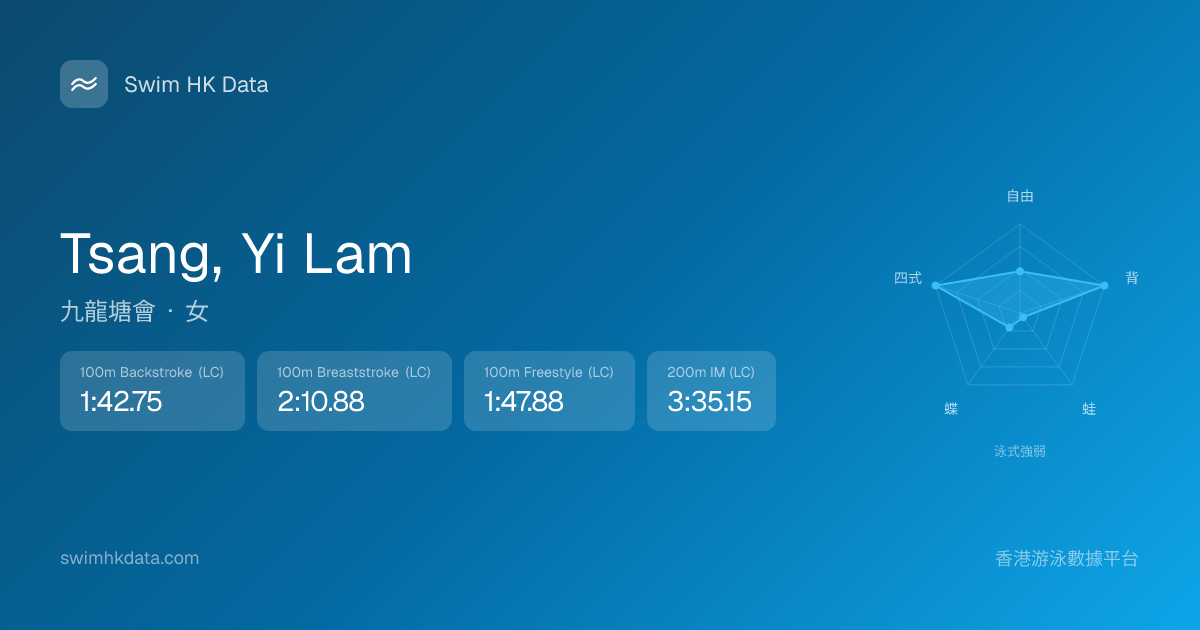 此圖表根據你所有比賽成績計算,顯示你在各泳式的相對強弱,僅供參考。繼續努力,每一次練習都會讓你更快更強!💪