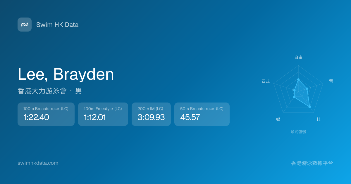 此圖表根據你所有比賽成績計算,顯示你在各泳式的相對強弱,僅供參考。繼續努力,每一次練習都會讓你更快更強!💪