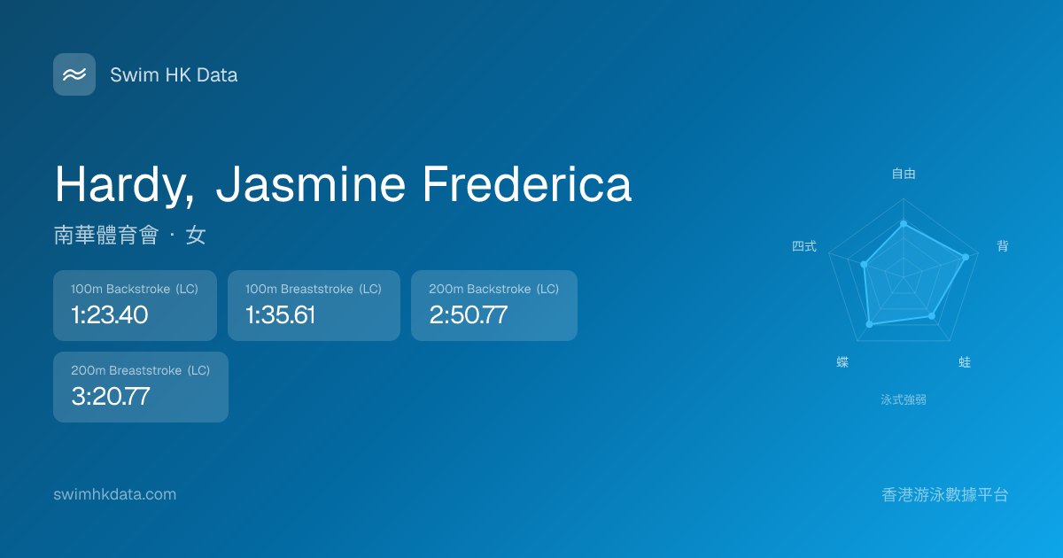 此圖表根據你所有比賽成績計算,顯示你在各泳式的相對強弱,僅供參考。繼續努力,每一次練習都會讓你更快更強!💪
