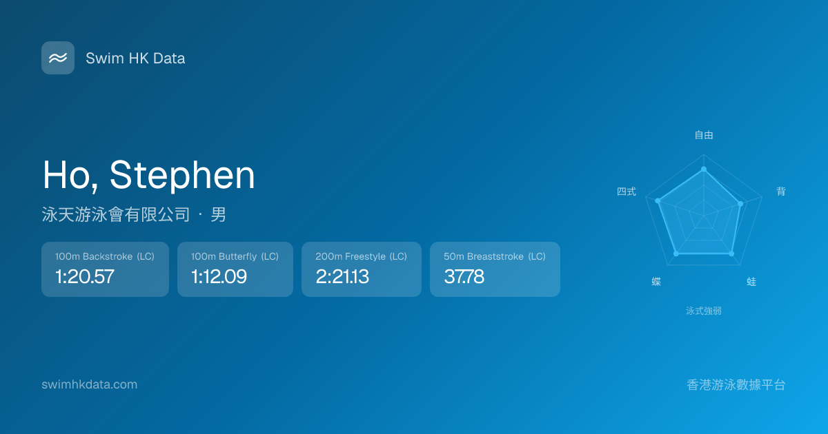 此圖表根據你所有比賽成績計算,顯示你在各泳式的相對強弱,僅供參考。繼續努力,每一次練習都會讓你更快更強!💪