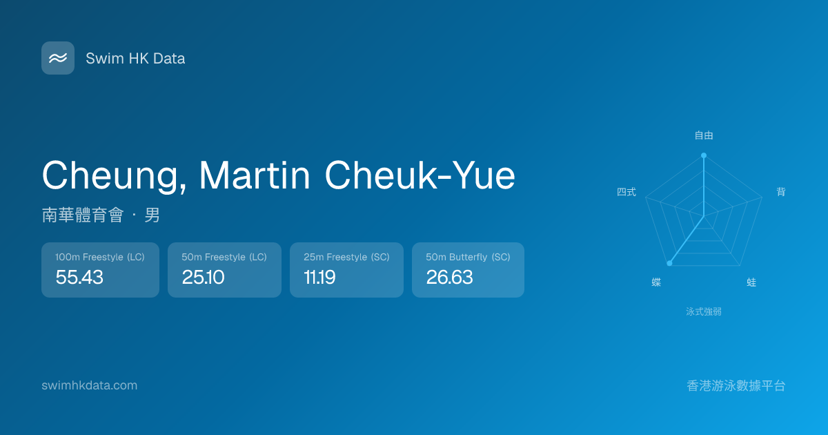 此圖表根據你所有比賽成績計算,顯示你在各泳式的相對強弱,僅供參考。繼續努力,每一次練習都會讓你更快更強!💪