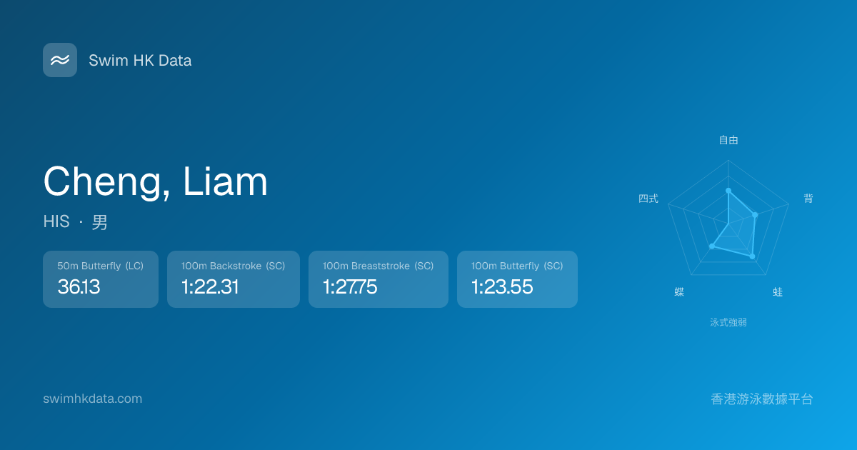 此圖表根據你所有比賽成績計算,顯示你在各泳式的相對強弱,僅供參考。繼續努力,每一次練習都會讓你更快更強!💪