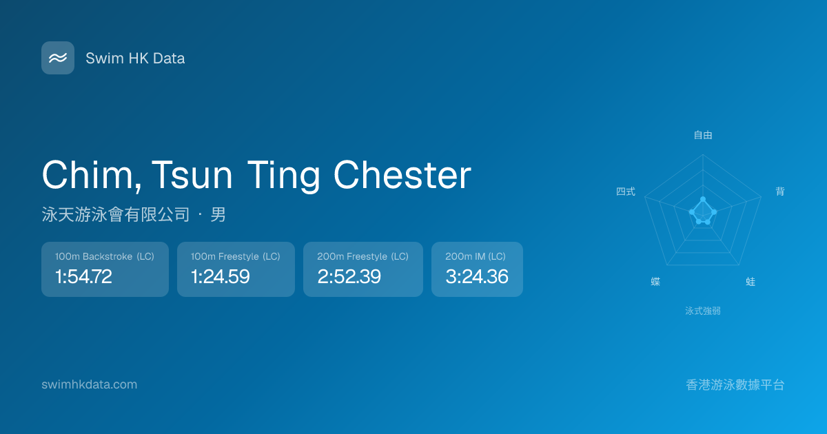 此圖表根據你所有比賽成績計算,顯示你在各泳式的相對強弱,僅供參考。繼續努力,每一次練習都會讓你更快更強!💪