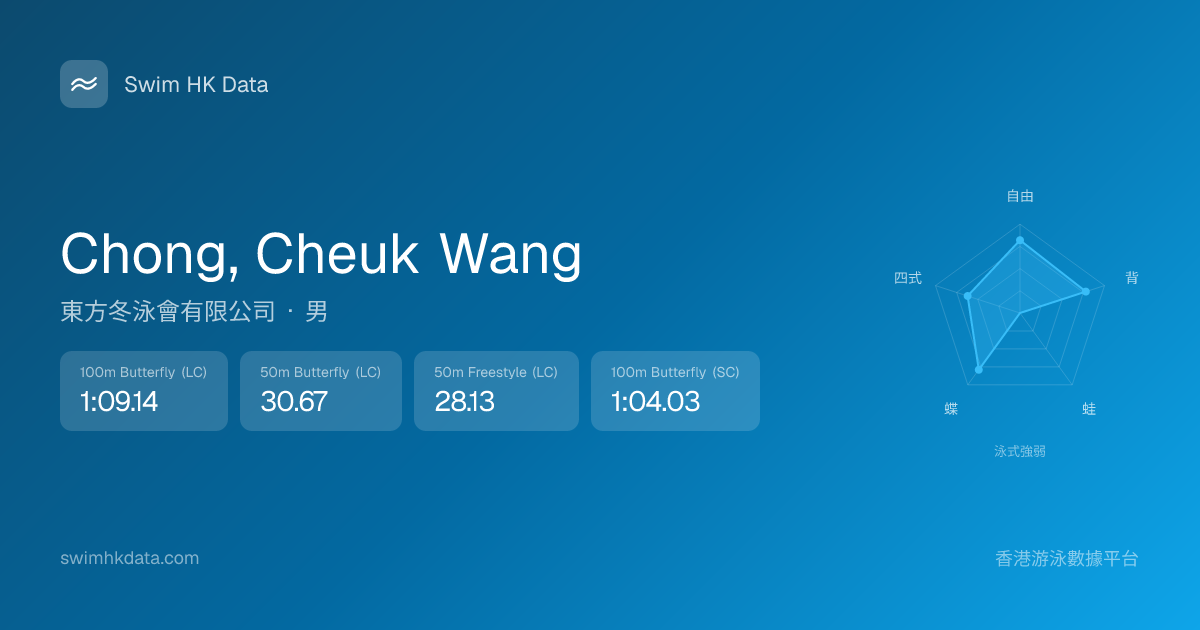 此圖表根據你所有比賽成績計算,顯示你在各泳式的相對強弱,僅供參考。繼續努力,每一次練習都會讓你更快更強!💪