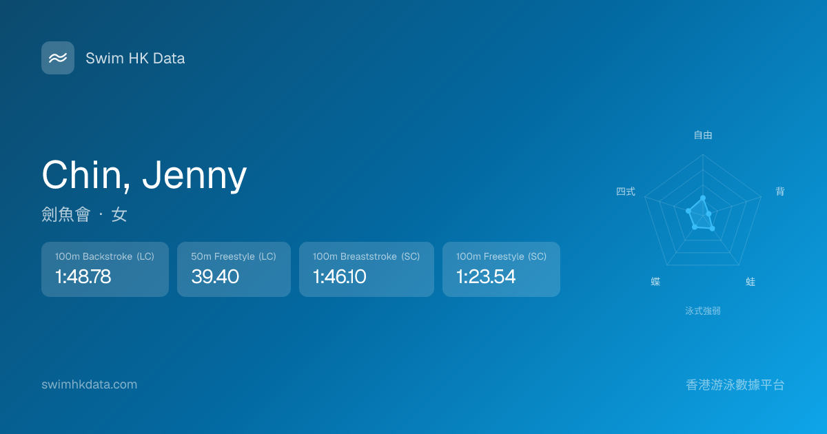 此圖表根據你所有比賽成績計算,顯示你在各泳式的相對強弱,僅供參考。繼續努力,每一次練習都會讓你更快更強!💪
