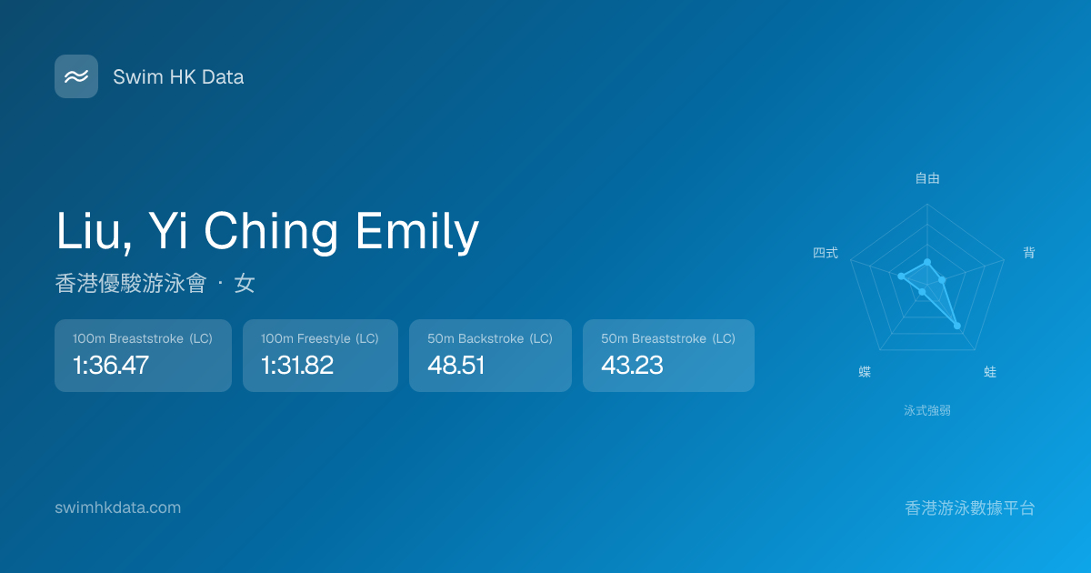 此圖表根據你所有比賽成績計算,顯示你在各泳式的相對強弱,僅供參考。繼續努力,每一次練習都會讓你更快更強!💪