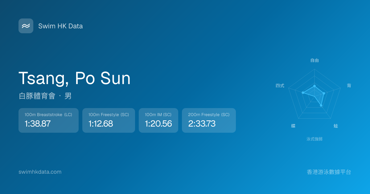 此圖表根據你所有比賽成績計算,顯示你在各泳式的相對強弱,僅供參考。繼續努力,每一次練習都會讓你更快更強!💪
