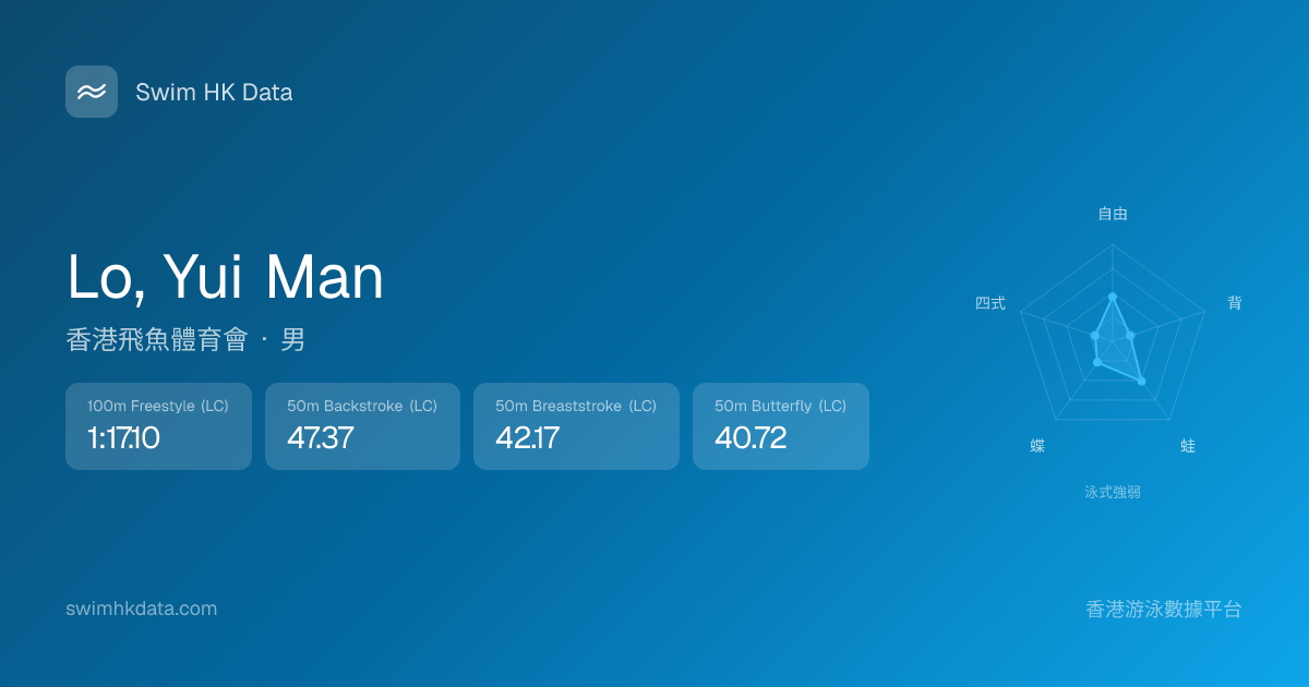 此圖表根據你所有比賽成績計算,顯示你在各泳式的相對強弱,僅供參考。繼續努力,每一次練習都會讓你更快更強!💪