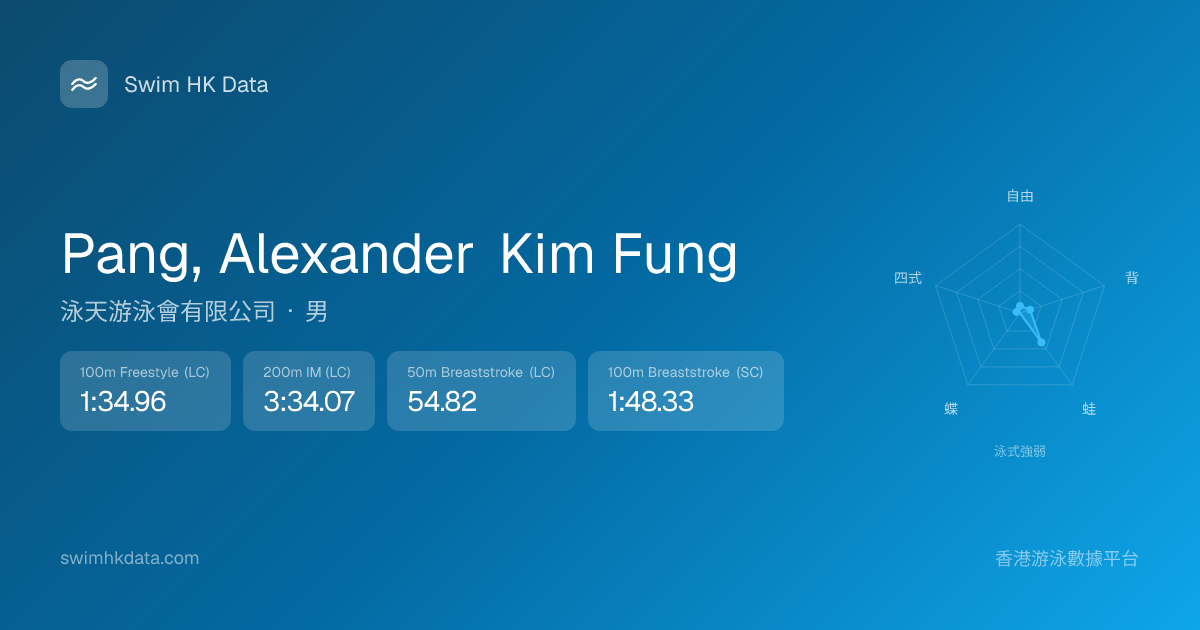 此圖表根據你所有比賽成績計算,顯示你在各泳式的相對強弱,僅供參考。繼續努力,每一次練習都會讓你更快更強!💪