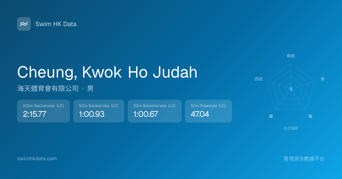 此圖表根據你所有比賽成績計算,顯示你在各泳式的相對強弱,僅供參考。繼續努力,每一次練習都會讓你更快更強!💪